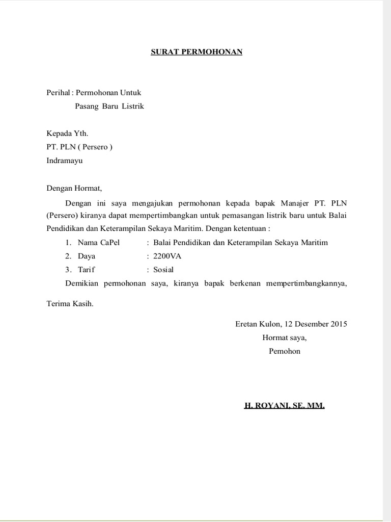 Contoh Surat Permohonan Pemasangan Listrik Surat Permohonan Desain Contoh Surat A38wal3pow